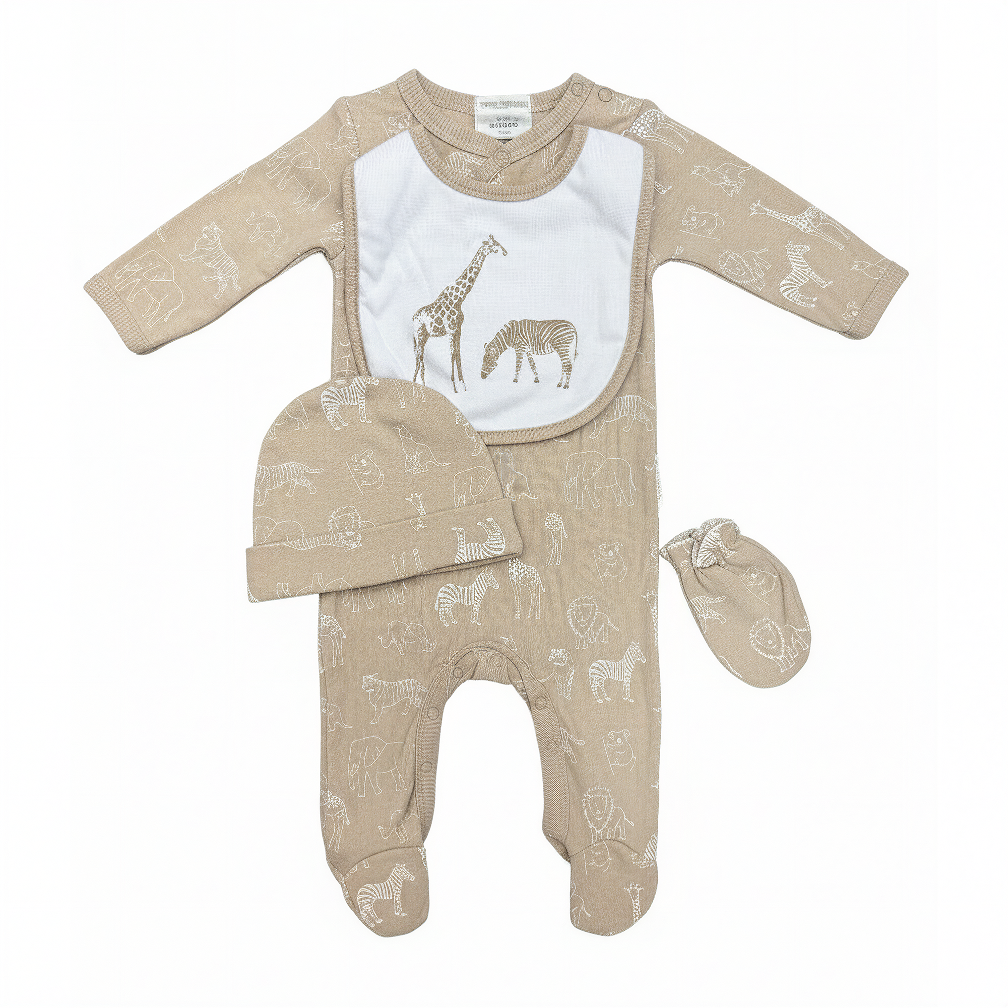 Adventure starts early with our adorable 5 Piece Giraffe Baby Clothing Set, designed to keep your little explorer cosy, comfy, and photo-ready from day one.