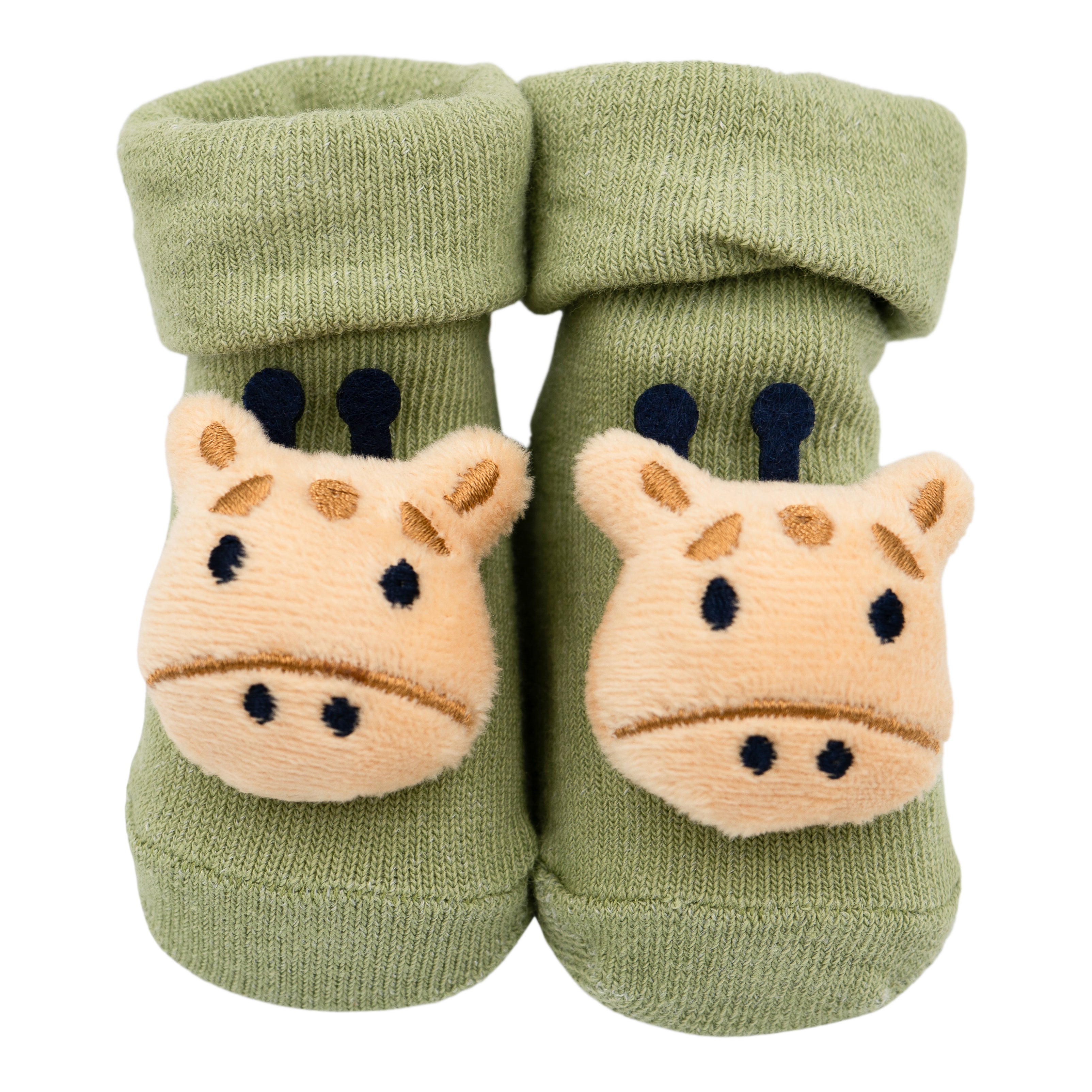 These giraffe bootees come in a cheeky giraffe design.