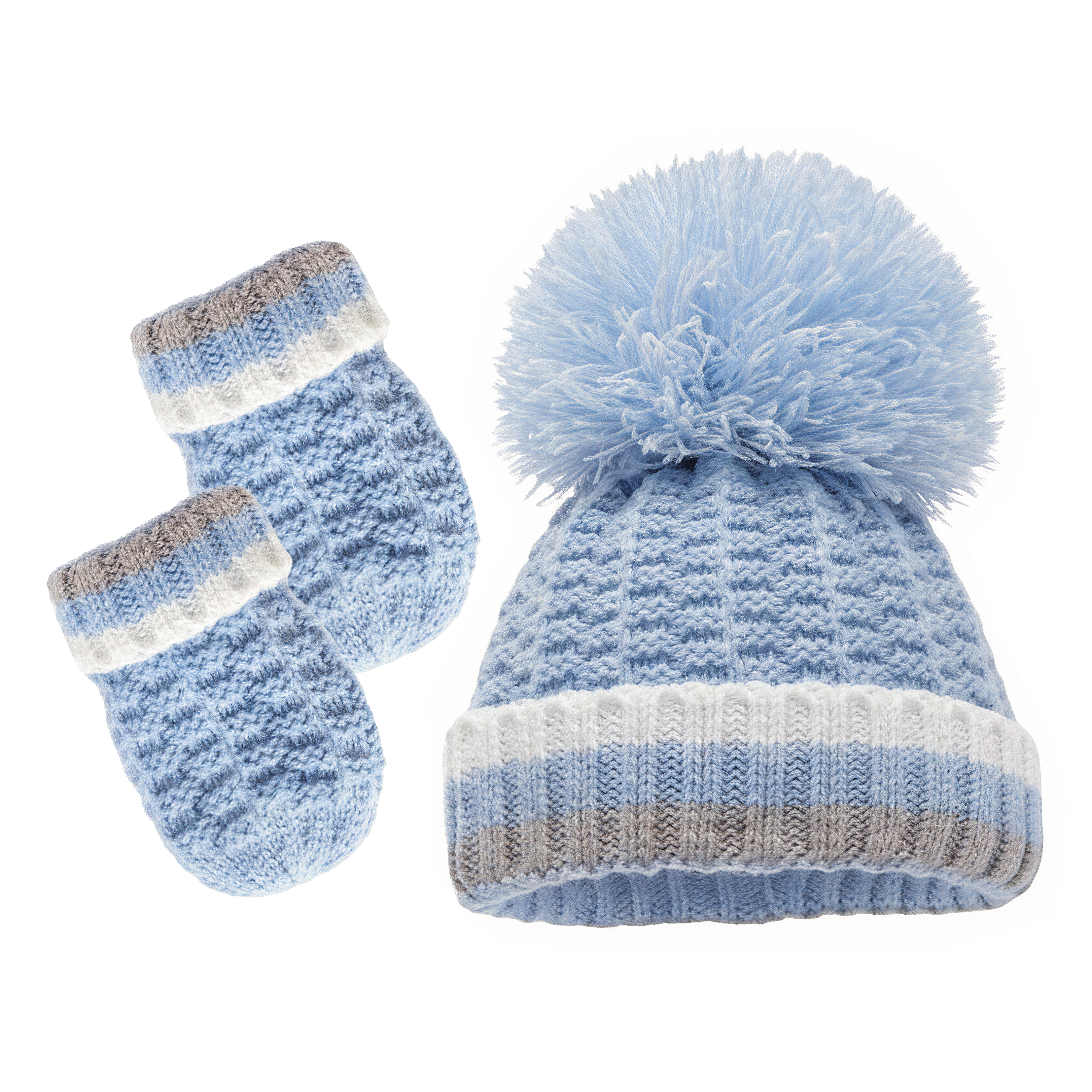 Keep little ones snug and stylish with this adorable hat and mitten set. Made from 100% acrylic, it’s soft, cosy, and gentle on delicate skin. The knitted hat features a fold-over turnover brim and a large fluffy pom pom for extra cuteness, while the matching mittens complete the look and keep tiny hands warm.