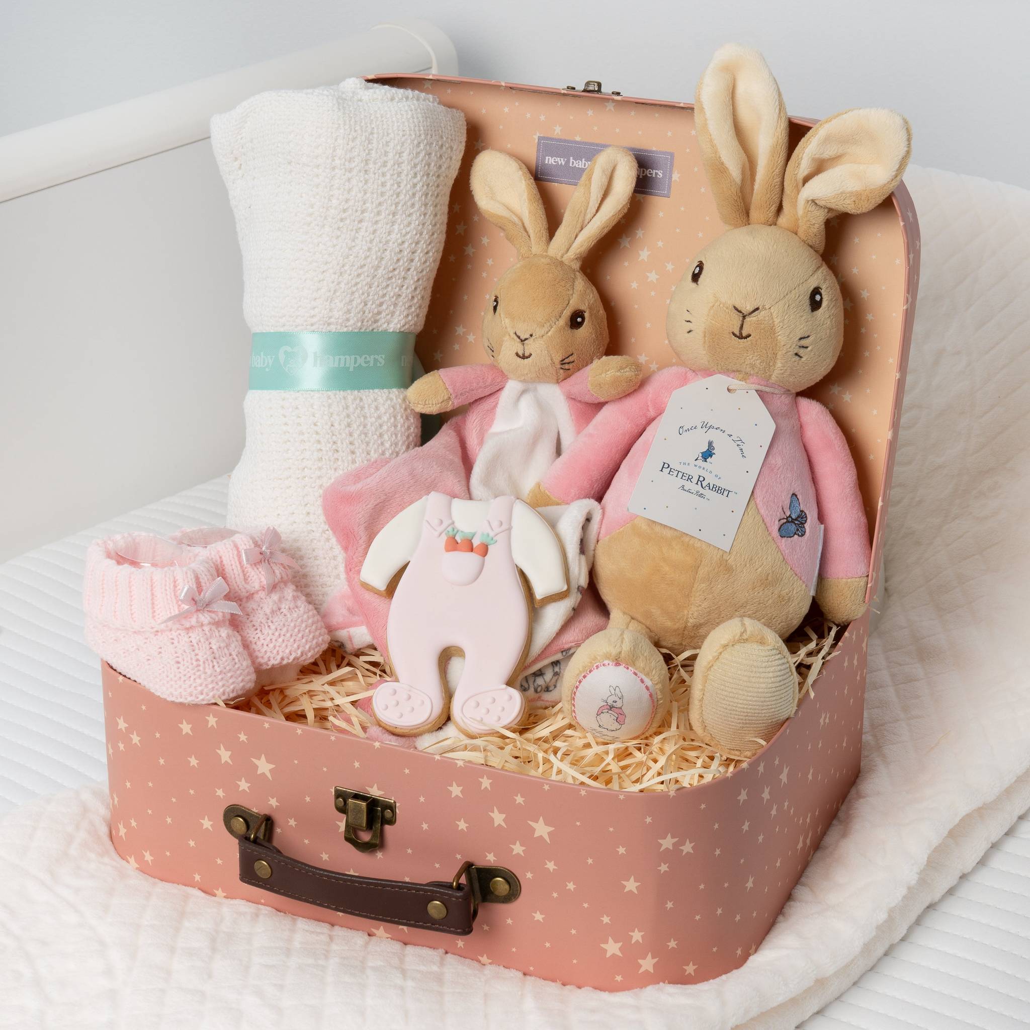 Full of softness and sweet touches, this thoughtful hamper is designed to welcome a new baby girl with comfort and care. Inspired by the world of Peter Rabbit, it brings together beautiful keepsakes and cosy essentials, all packed into a pretty starry suitcase.