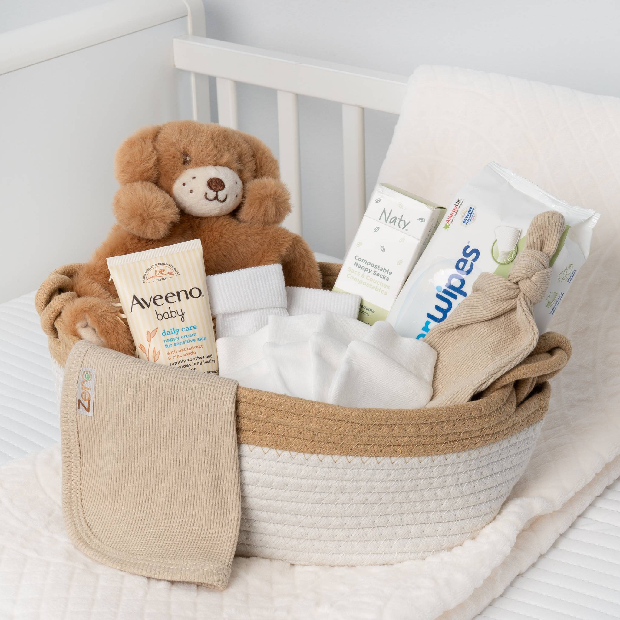 This practical and comforting hamper is filled with everyday baby care must-haves in calming, gender-neutral tones. Thoughtfully curated to support new parents with gentle products, it's ideal for gifting at baby showers or welcoming a new arrival.