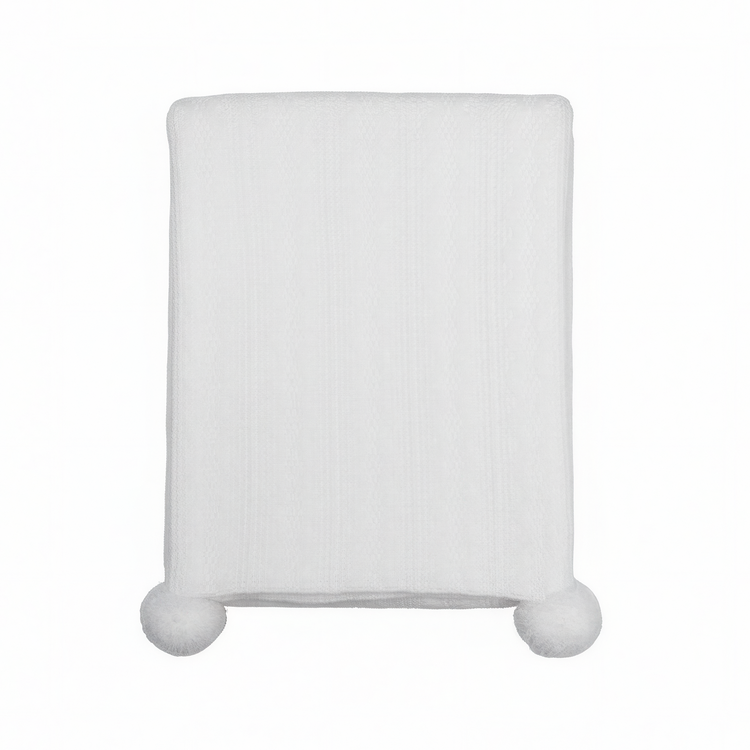 A soft knitted baby blanket in classic white with a warm sherpa fleece backing for added comfort and insulation. Measuring 75 x 90 cm it is designed for everyday use from pram outings to naps and quiet moments at home.