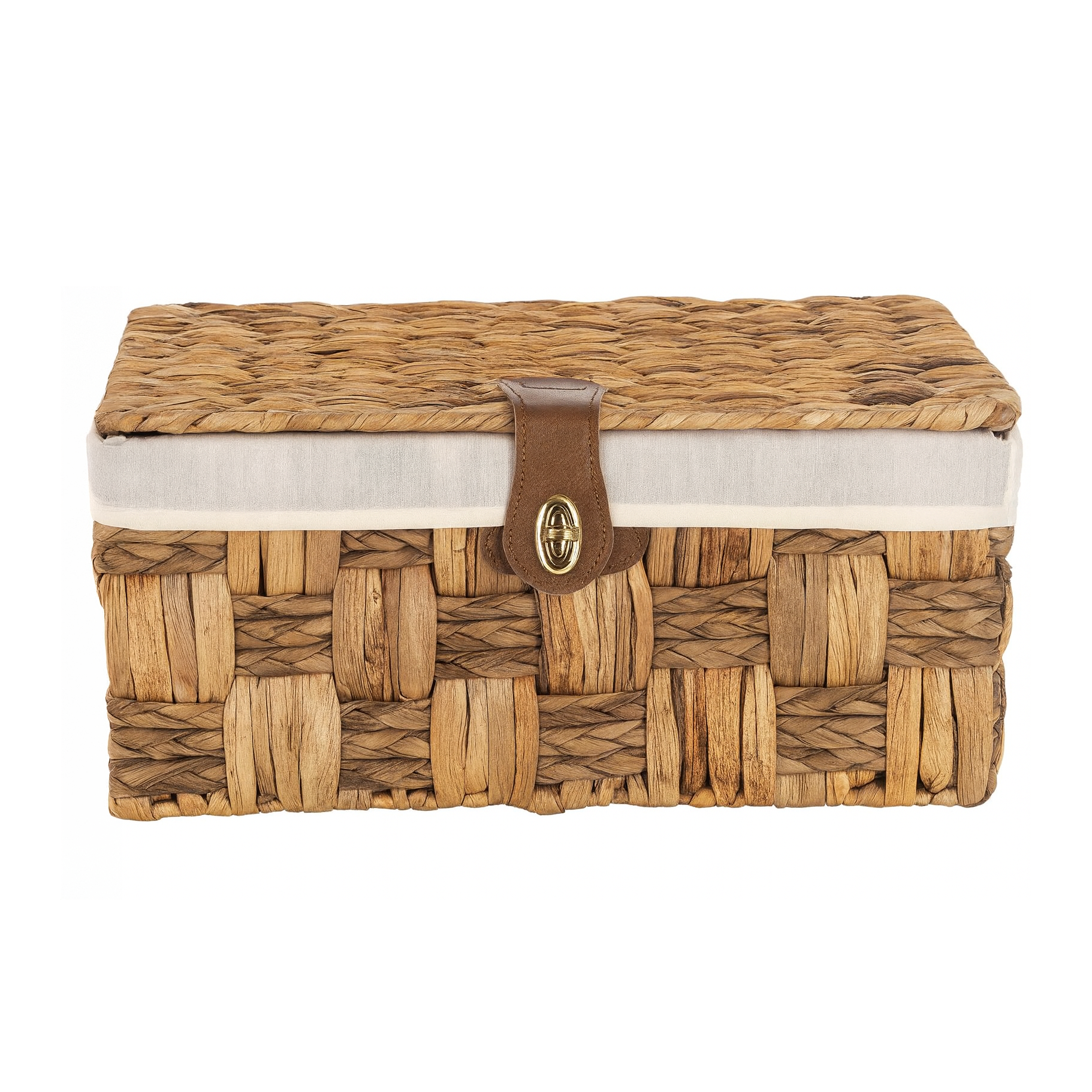 Each hamper comes with a removable cotton lining secured by adjustable ties, a faux leather strap, and a twist-lock clasp for a refined finish. Ideal for keeping blankets, toys, toiletries, or keepsakes neatly stored.