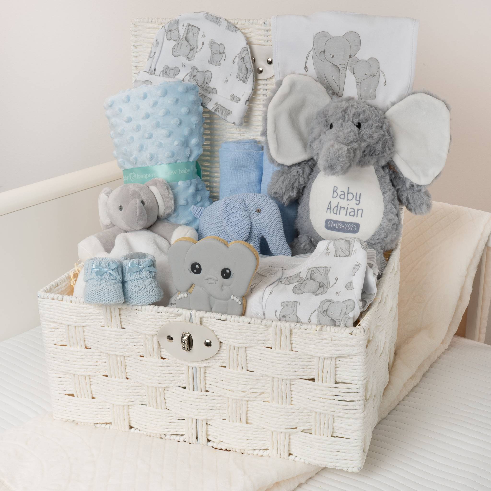 Celebrate a new arrival with this beautifully coordinated elephant-themed baby girl hamper. Thoughtfully packed with cosy essentials, adorable keepsakes and soft textures, it’s the perfect gift to welcome a little one in style.