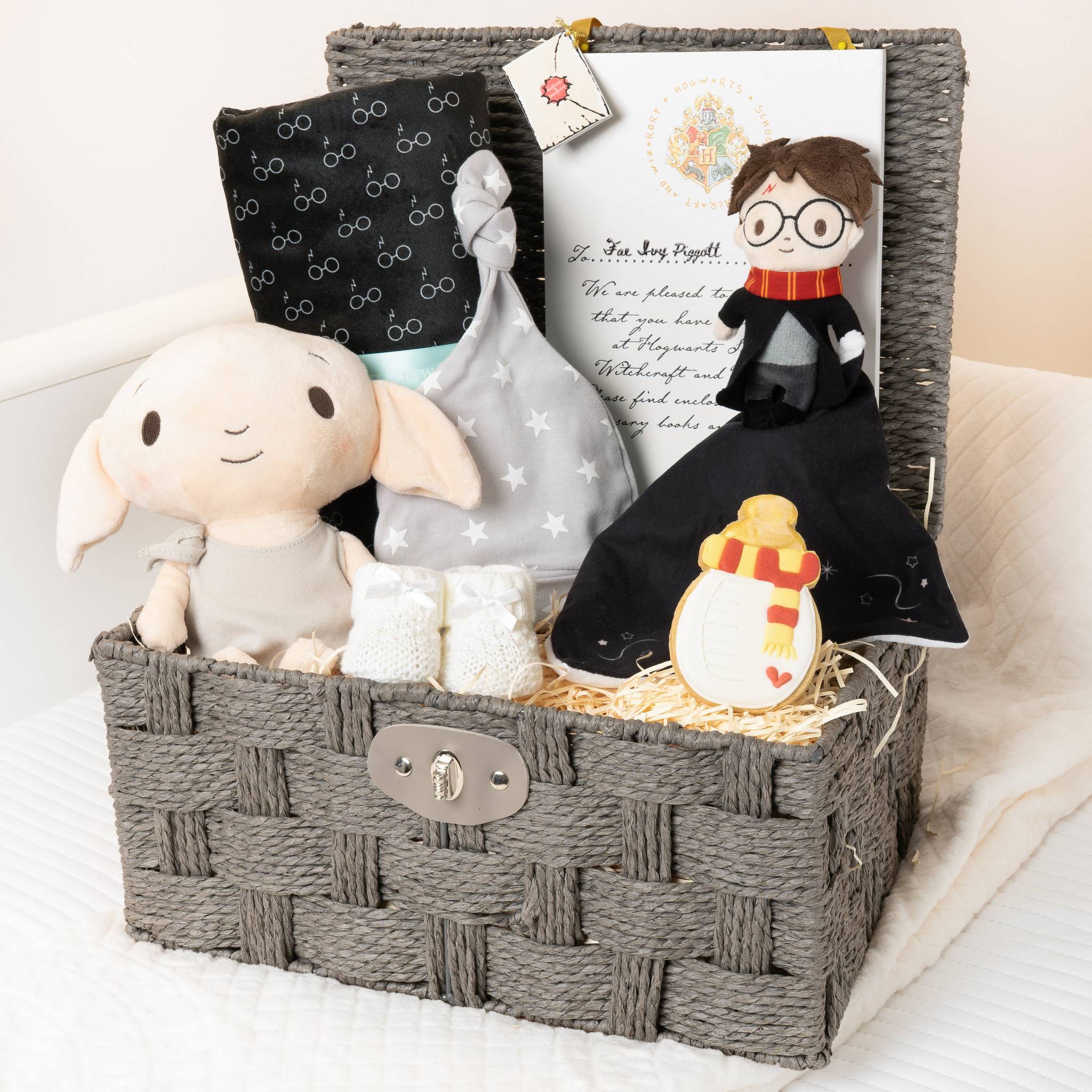 A magical gift for new parents and little wizards, this Harry Potter baby hamper features a curated selection of baby essentials and keepsakes inspired by the wizarding world. Filled with soft textures, playful characters, and licensed merchandise, it's the perfect gift to welcome a new arrival.