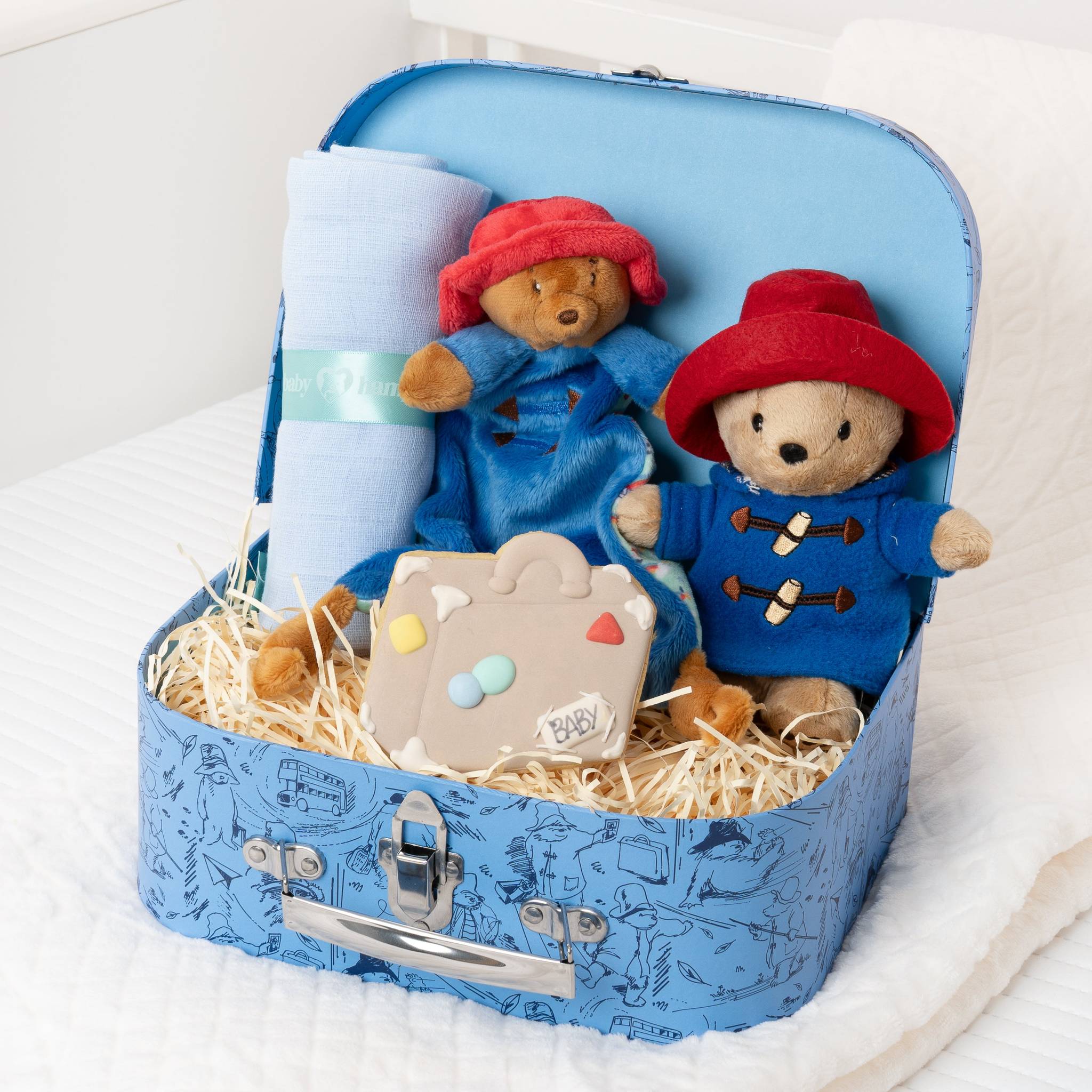 A thoughtful gift for a new baby with a touch of storybook charm. This Paddington Bear themed hamper brings together softness, comfort and a little adventure, all packed neatly into a keepsake suitcase.
