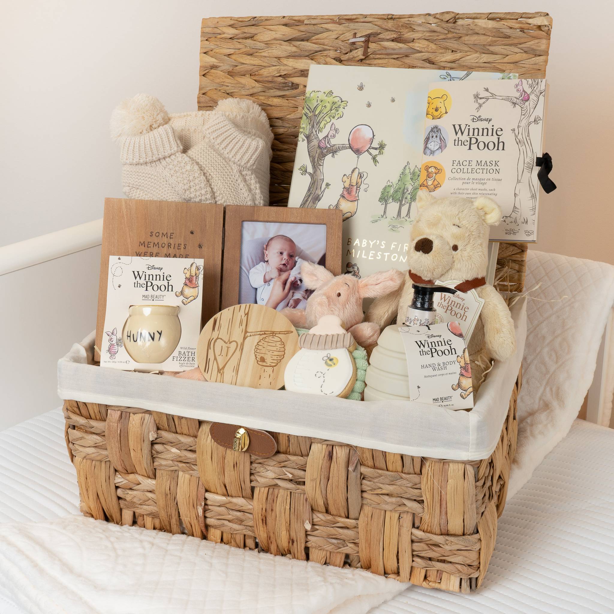 A beautifully curated hamper that brings together comfort, keepsakes and classic storybook charm. With thoughtful gifts for both baby and parents, this Winnie the Pooh themed hamper is a lovely way to celebrate the arrival of a new little one.