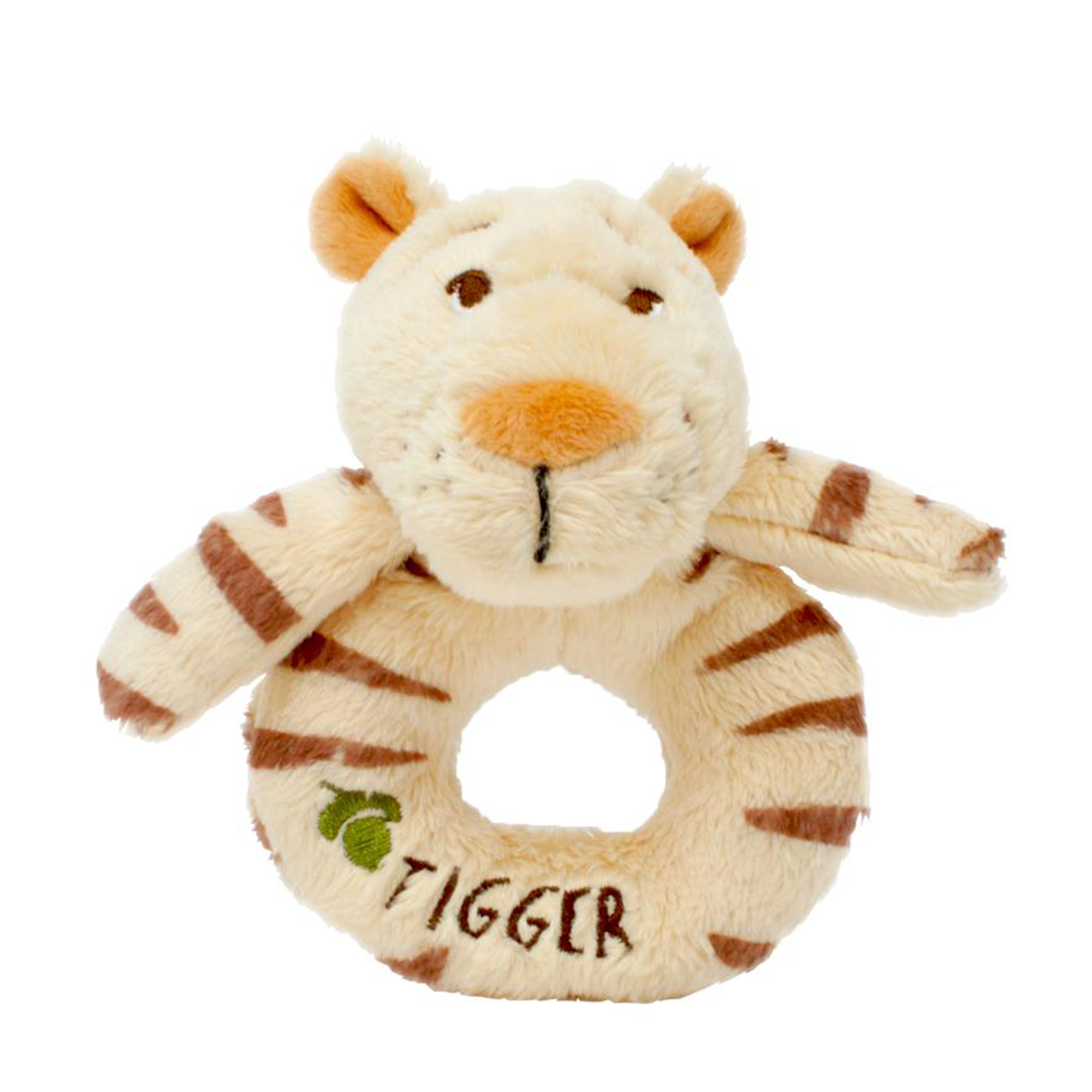 Bounce into playtime with this adorable Classic Pooh Tigger ring rattle, perfect for little hands from birth. Made from soft plush fabric with gentle embroidered details, it features Tigger’s cheerful face and signature stripes. The lightweight ring shape is easy for babies to grasp, while the gentle rattle sound stimulates hearing and encourages sensory development. Designed for both fun and comfort, it’s ideal for keeping your little one entertained at home or on the go. With its classic Hundred Acre Wood charm, this Tigger rattle makes a thoughtful baby shower or newborn gift that will be treasured by parents and little ones alike.
